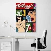 On reconnaît l’esthétique pop: couleurs saturées, contrastes forts, lignes nettes. Ce tableau parlera à qui aime le trait graphique, les ambiances rétro et les images qui claquent. Il dégage de l’assurance, un côté espiègle aussi, on sourit en le regardant, on revient l’observer, il attire le regard. Il convient particulièrement au salon, à la chambre ou à un bureau jeune et créatif.