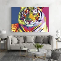 Tableau Pop Art Tigre, un portrait coloré et percutant