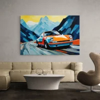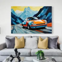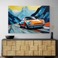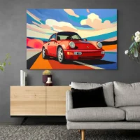 Accrochez la toile au-dessus d’un meuble bas ou dans un bureau pour créer un point focal. Sur un mur clair la voiture ressort. Sur un mur sombre l’ambiance devient plus dramatique. Pour prolonger le thème, découvrez nos tableaux voiture ou explorez nos tableaux photographie.