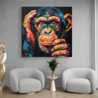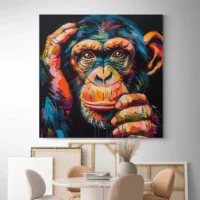 Accrochez la toile au-dessus d’un meuble en bois clair ou d’un buffet sombre. Sur un mur blanc les couleurs ressortent, sur un mur foncé l’ambiance devient plus intense. Associez avec d’autres pièces animales ou une palette naturelle. Pour explorer, regardez aussi nos tableaux d’animaux et nos tableaux singe.