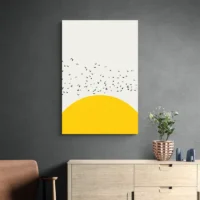 Suspendu au-dessus d'un canapé clair ou d'une console, il donne du caractère sans charger. Sur un mur blanc, le jaune ressort. Avec des coussins gris, un tapis beige et des éléments en bois, l'ensemble devient cohérent. Découvrez aussi nos tableaux scandinaves et nos tableaux minimalistes.