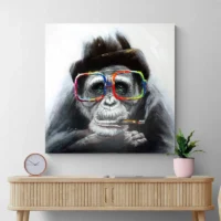 Pour l’associer, on joue sur un mur clair ou pastel afin que le sujet ressorte. On peut l’accrocher seul comme pièce maîtresse dans un salon ou une chambre, ou l’associer à des objets simples et design. Tableau Singe À Lunettes est aussi joli à côté d’un cadre minimaliste et d’éclairage chaleureux.