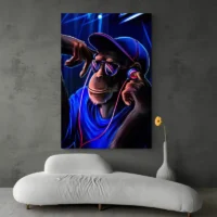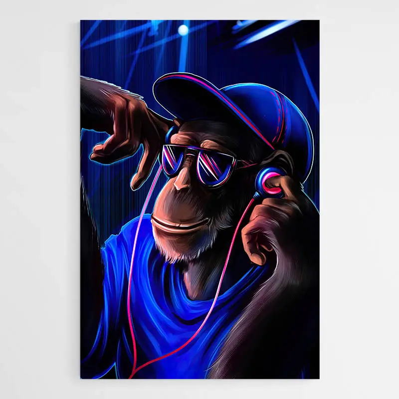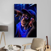 Tableau Singe avec Écouteurs, une touche décalée et joyeuse