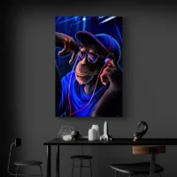 Ce Tableau Singe avec Écouteurs attire le regard dès l’entrée. On ressent une ambiance légère et moderne. Le singe est en gros plan et porte des écouteurs, ce qui donne une énergie urbaine et ludique. Le fond neutre met le sujet au centre. Son regard espiègle et son sourire suggèrent une curiosité simple et chaleureuse. Les détails simples restent lisibles, et l’ensemble dégage chaleur et énergie.