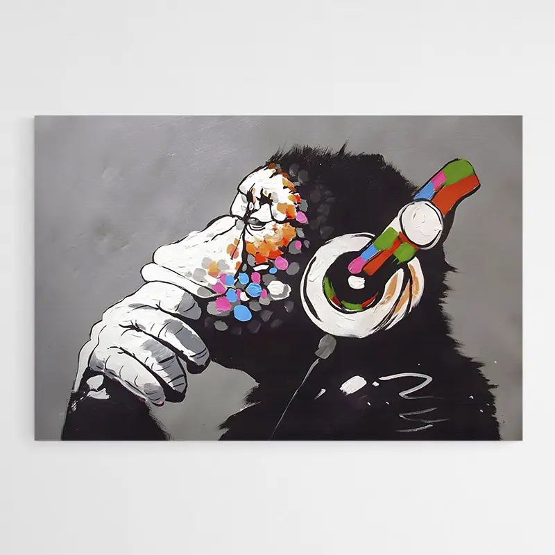 Tableau Singe Banksy, une image percutante et urbaine