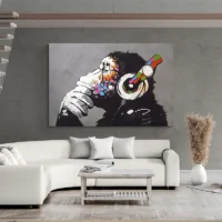 Accrochez cette toile sur un mur blanc pour accentuer les contrastes, ou sur un mur béton pour renforcer le côté urbain. Associez-la à des cadres noirs et à des accessoires métalliques. Pour d’autres propositions, découvrez nos tableaux singe ou nos tableaux art de rue.