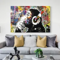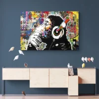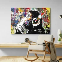 On ressent une énergie ludique et un côté moderne. Ce tableau plaira aux amateurs d'animaux avec une touche contemporaine, aux chambres jeunes, aux bureaux qui cherchent une note vive. L'expression du singe donne une présence, une présence immédiate dans la pièce.