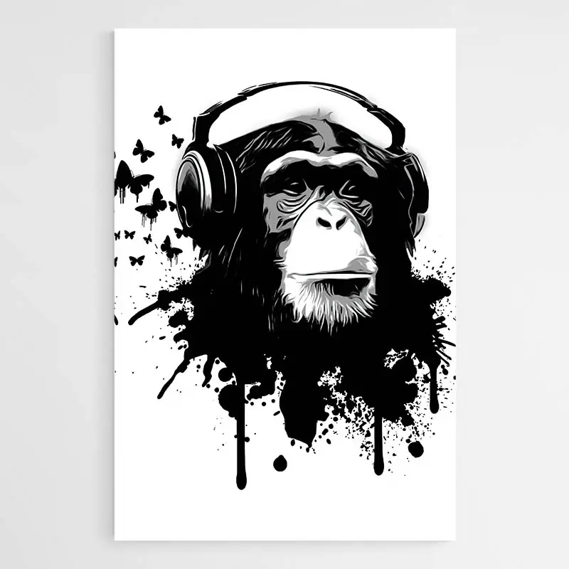 Tableau Singe Casque Musique