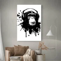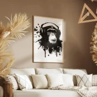 Il fonctionne particulièrement bien au-dessus d’un canapé, d’un bureau ou dans une entrée. On l’associe à des coussins unis, une lampe discrète ou des étagères claires pour garder l’attention sur le visage du singe. Simple et efficace.