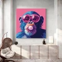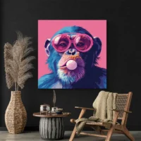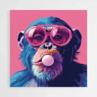 Tableau singe chewing gum rose, une touche espiègle pour vos murs