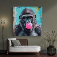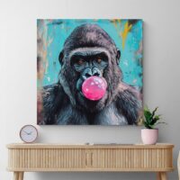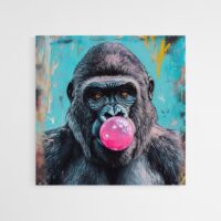 On ressent une énergie malicieuse, presque joueuse. L’expression du singe et la grosse bulle créent une image qui donne le ton, légère et pleine d’esprit. Ce tableau séduira les amateurs d’images décalées, les familles, ceux qui aiment une déco qui sourit, ou qui cherchent une touche conviviale pour une chambre ou un couloir.