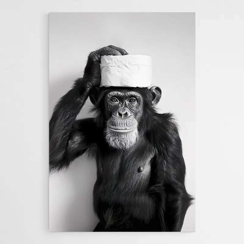 Tableau Singe Noir et Blanc Toilettes, une scène pleine d'humour