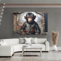 Placez cette toile au-dessus d'un canapé sobre ou dans une entrée pour en faire un point focal. Associez-la à des cadres noirs ou à des meubles en bois clair pour tempérer le côté brut. Pour prolonger l'esprit, découvrez nos tableaux singe ou explorez la sélection tableaux street art.