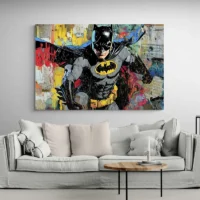 Le rendu évoque le pochoir et la peinture en aérosol, avec des contours nets. L'ambiance reste urbaine, énergique et rugueuse. Il séduira ceux qui aiment les bandes dessinées, les portraits de héros et la déco forte. On ressent une présence puissante, comme un fragment de rue, et ça tape tout de suite sur le mur, vraiment.