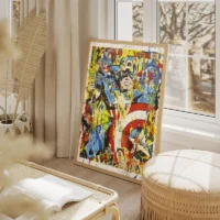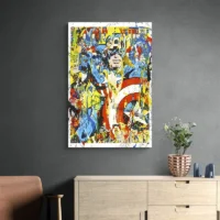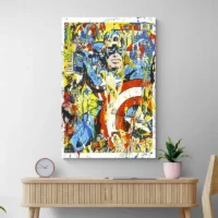 On ressent une énergie urbaine immédiate. Les couleurs rouge, bleu et blanc dominent la composition. Le regard du personnage reste frontal et affirmé, presque comme un poster de rue. Ce tableau séduira les amateurs de super-héros et ceux qui aiment une déco qui marque une pièce.
