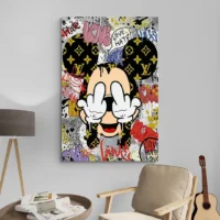 Le mélange de traits nets et de taches peintes donne du mouvement. Il plaira aux amateurs d’images pop-art, aux fans des personnages et à ceux qui aiment une déco qui bouge. On veut de l’audace sur le mur. Ici, on l’obtient sans effort, sans surcharge, simple et direct.