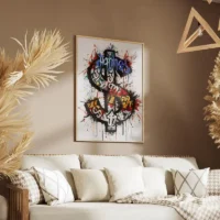 Accrochez-le au-dessus d’un canapé sombre ou d’une console en métal pour renforcer son impact. Associez-le à cadres noirs, lampes industrielles et textiles sobres. Pour compléter, découvrez nos univers similaires comme tableaux street art ou nos options pop avec tableaux pop art.