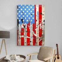 On ressent une énergie directe, un esprit revendicatif et coloré. Ce tableau séduira les amateurs d'art de rue, les personnes attirées par les motifs patriotiques remis en contraste, et ceux qui cherchent une pièce qui affirme un caractère. Les couleurs rouge, bleu et blanc frappent le regard et créent un contraste net, parfois brut, parfois lumineux.
