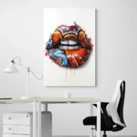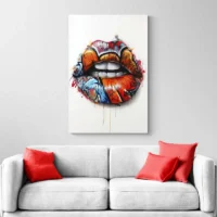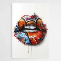 On ressent une énergie urbaine dès le premier regard. Le contraste fort entre les lèvres colorées et le fond sombre crée une présence immédiate. Cette toile séduira les amateurs d'art de rue et ceux qui aiment les images graphiques et affirmées. Elle apporte audace, caractère et parfois un sourire, selon l'endroit où on la pose.