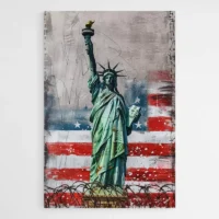 Ce Tableau Street Art New York frappe par son énergie. On voit un mur de briques peint, des éclaboussures de peinture rouge et bleu, et une silhouette de gratte‑ciels en arrière-plan. Des lettres graffiti en noir et jaune tracent des formes nettes, avec des coulures et des traces de bombe qui donnent du mouvement. Le contraste entre les tons chauds et les aplats sombres crée une tension visuelle intéressante, on ressent le bruit de la ville presque immédiatement.