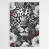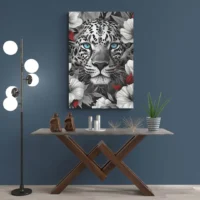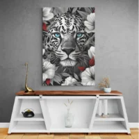 On sent tout de suite le caractère du sujet. Le réalisme du pelage, la précision des taches et l’éclat du regard vont séduire les amateurs d’animaux et ceux qui aiment les portraits de grands félins. L'effet recherché combine intensité et élégance, sans en faire trop. Il convient pour un salon, un bureau ou une entrée qui veulent une présence marquée.