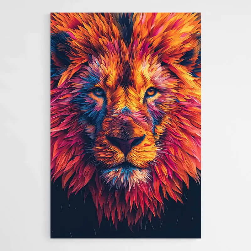 Tableau Tête de Lion Multicolore, une pièce qui réveille le mur