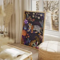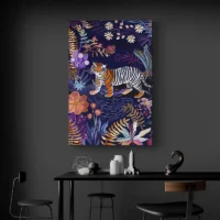 Accrochez ce tableau sur un mur clair pour que les couleurs claquent, ou sur un mur sobre pour qu’il devienne le point focal. Associez-le à d’autres pièces animalières ou à des touches colorées. Pour explorer, découvrez nos tableaux tigre et nos tableaux d’animaux.