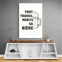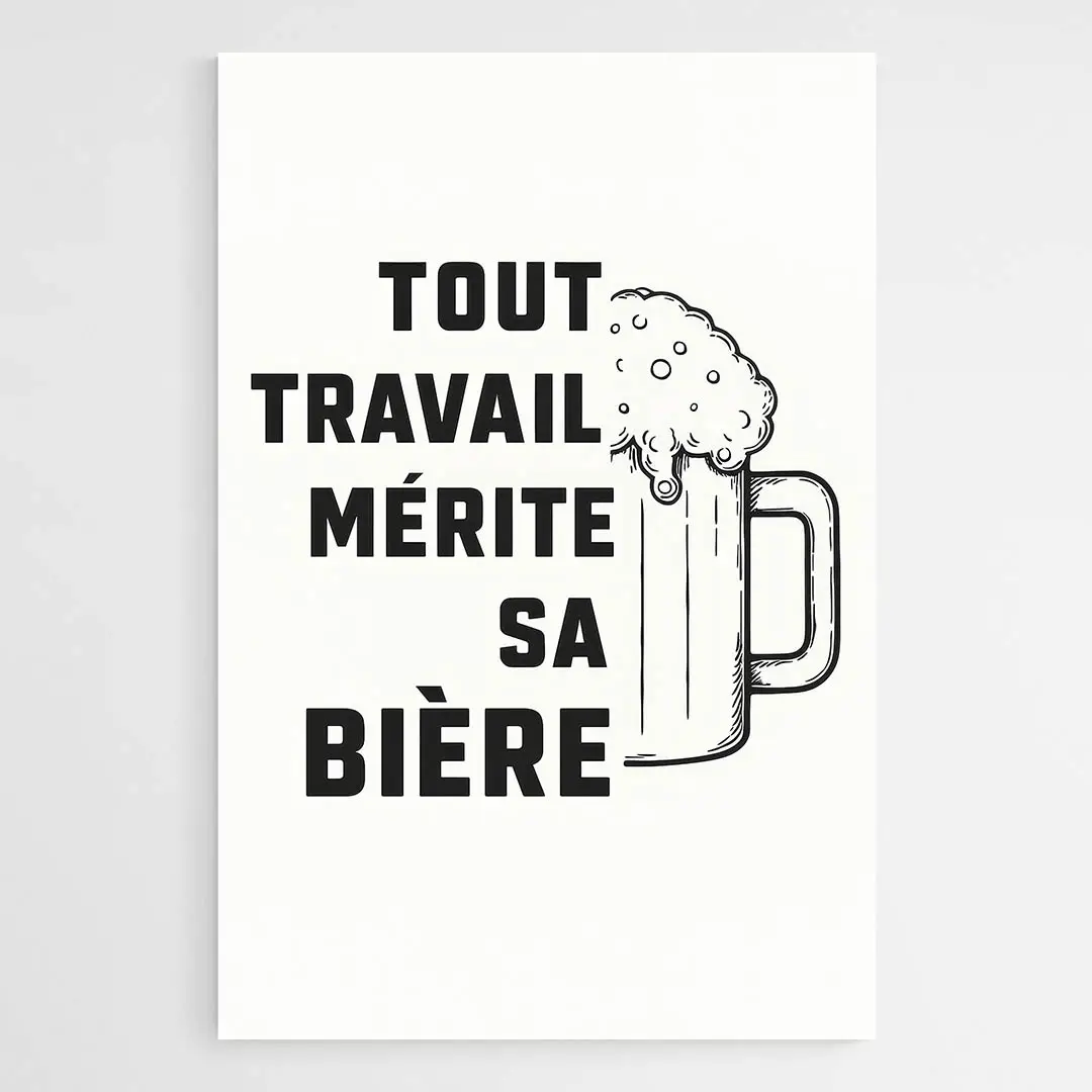 Tableau Tout travail mérite sa bière, une affiche conviviale et directe