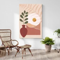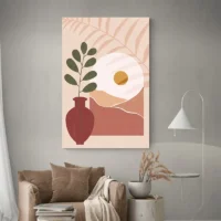 Sur un mur blanc ou beige, les formes ressortent bien. Avec du mobilier en bois clair, des coussins écrus et une plante verte, l’ensemble devient chaleureux et équilibré. On peut aussi le mettre au-dessus d’un canapé épuré ou d’une console. Pour d’autres pièces dans le même esprit, découvrez nos tableaux minimalistes ou explorez la sélection tableaux modernes.