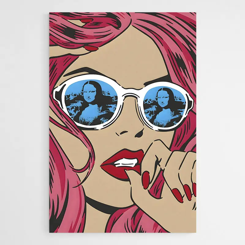 On reconnaît la grammaire du pop art: traits marqués, couleurs franches, contraste fort. Ce tableau plaira aux amateurs de visuels graphiques et aux personnes qui aiment une déco expressive. Il apporte une touche vive, presque théâtrale, sans être surchargé. On ressent dynamisme et caractère, et on sourit un peu.
