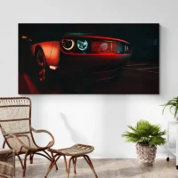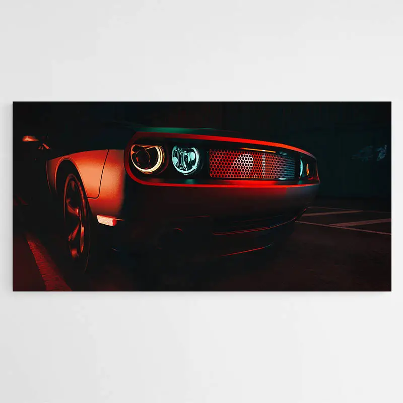 Accrochez cette toile au-dessus d'un buffet en bois foncé pour un beau contraste. Sur un mur clair, la couleur rouge ressort mieux. Ajoutez une lampe à lumière chaude pour faire briller la calandre. Pour compléter l'ensemble, explorez nos tableaux voiture ou nos tableaux vintage.