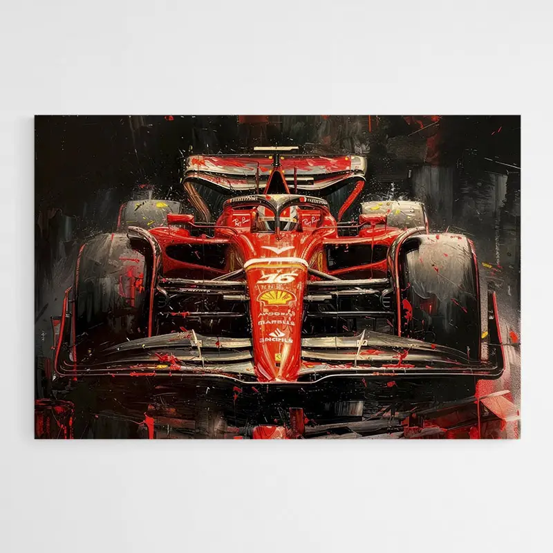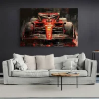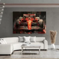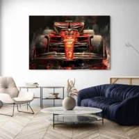 Les lignes aérodynamiques, la teinte rouge et le mouvement suggéré vont plaire aux fans de Formule 1. Ce tableau donne une ambiance dynamique, sportive et concentrée. Il attire le regard, il donne du caractère sans crier. Il convient aux personnes qui aiment les véhicules, la compétition et l’esthétique mécanique.