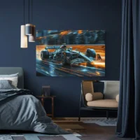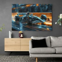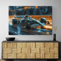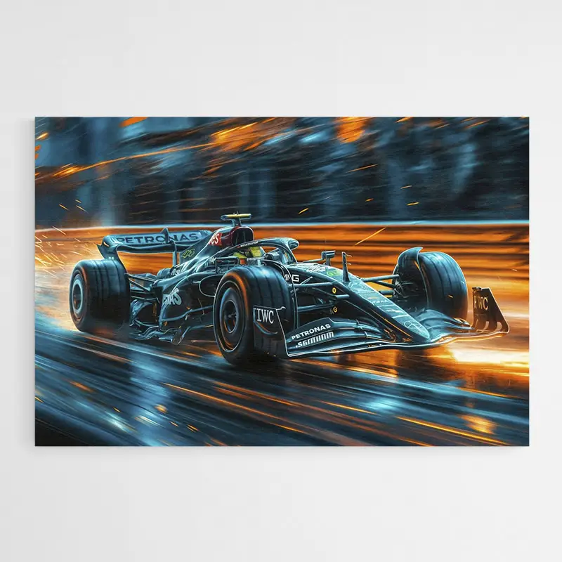 Ce tableau mise sur l'énergie et la précision. On le recommandera aux fans de Formule 1, aux admirateurs de Lewis Hamilton et à tous ceux qui aiment les images dynamiques. L'effet recherché s'appuie sur le cadrage serré, le flou de vitesse et les couleurs franches, qui provoquent excitation et admiration. C'est net, c'est direct, c'est précis.