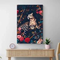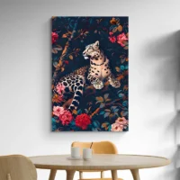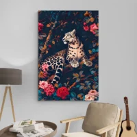 Le rendu ornemental rappelle l’esthétique historique, avec une densité de détails et une palette naturelle. Ce tableau séduira ceux qui aiment les motifs animaliers et les imprimés floraux. Il apporte une ambiance chaleureuse, à la fois sauvage et raffinée, idéale pour créer un point focal dans une pièce.