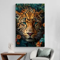 On ressent une ambiance à la fois classique et énergique. Les feuilles répétées créent du rythme, les taches du léopard apportent du contraste, les fleurs ajoutent de la délicatesse. Il plaira à qui aime les motifs répétitifs, les compositions naturalistes, ou les scènes animalières. Il donne du caractère sans écraser l'espace. Il invite au regard prolongé, à la découverte des détails, on y revient.
