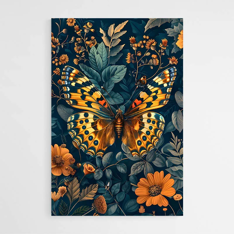 Tableau William Morris Papillon Dore, motif végétal élégant