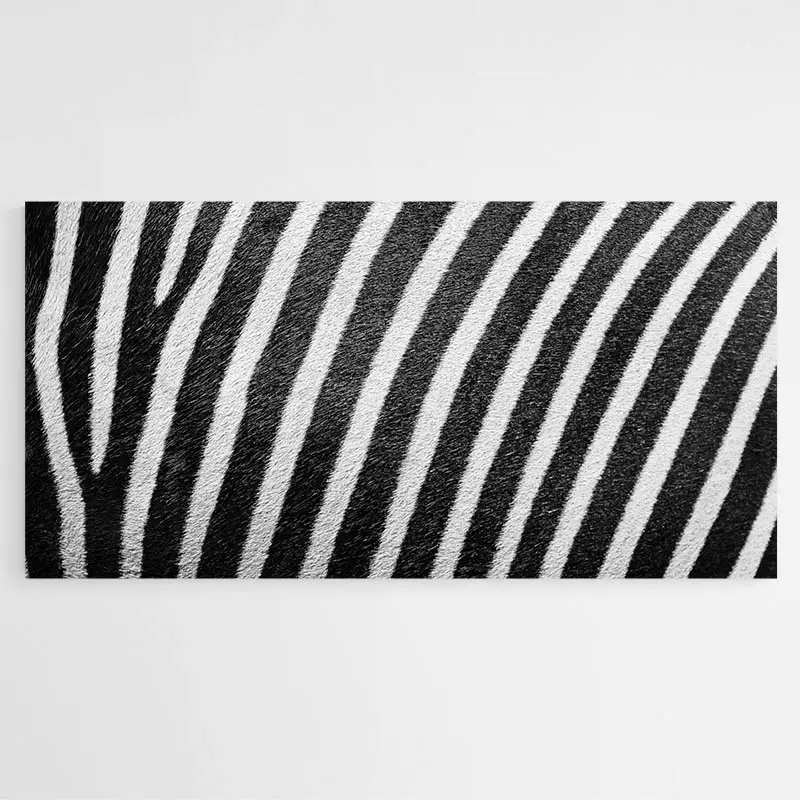 La composition mise sur la répétition des lignes: bandes épaisses et fines qui rythment l’image. Le contraste fort donne une présence immédiate, presque graphique. Cela plaira aux amateur·rice·s d’images animalières, aux fans de motifs forts, et à ceux qui cherchent une déco noire et blanche marquante. L’émotion vient du regard et des lignes, sobre mais saisissante.