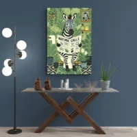 Sur un mur blanc ou clair, le contraste reste net. Près d'un meuble bois ou d'un cadre fin noir, le tableau s'intègre bien. Pour prolonger le thème, on peut jouer avec d'autres tableaux d’animaux ou opter pour des pièces dédiées au zèbre comme tableaux zèbre.
