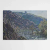 Ce The Petite Creuse River - Monet se présente comme un tableau qui respire le calme. On voit une rivière étroite qui serpente, des berges herbeuses, et un ciel clair qui baigne l’ensemble d’une lumière douce. Cette toile garde une impression de mouvement, sans être agitée.